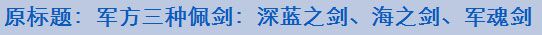 除了“深蓝之剑”,军方还有“海之剑”和“军魂剑”这两种佩剑,均是由军校配发给毕业生。虽然形状、花纹不同,但它们都寓意着军人的荣誉、胃炎,以及军魂。