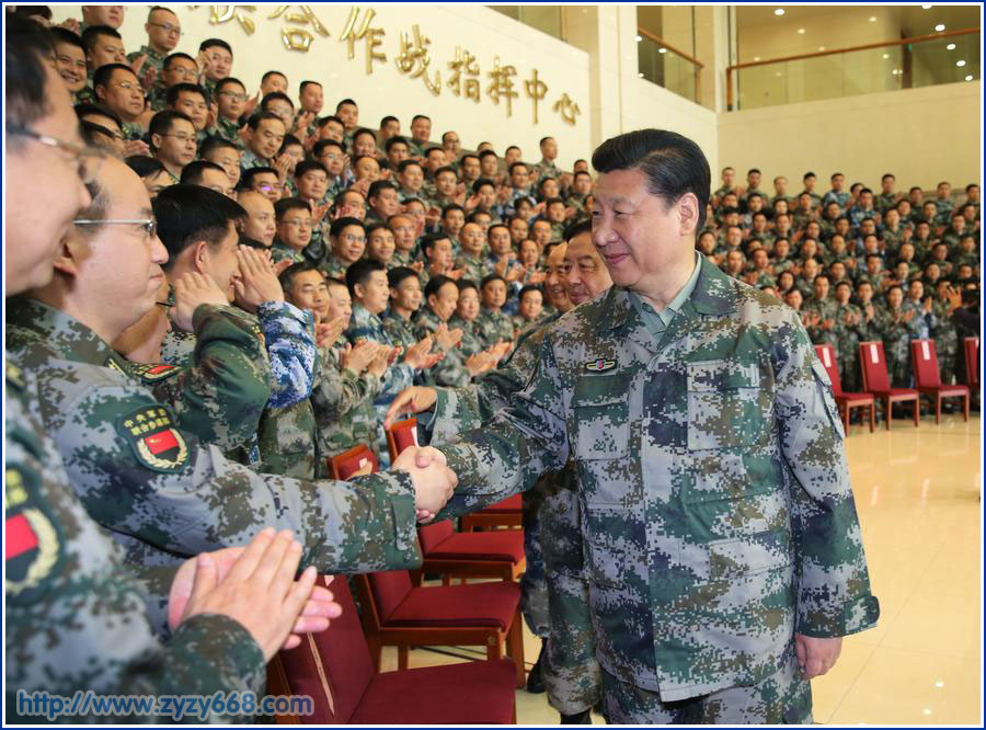 习近平强调,要以党在新形势下的强军目标为引领,贯彻新形势下军事战略方针,聚焦研究打仗、指挥作战这个核心职能,进一步解放思想、转变观念、开拓创新、攻坚克难,努力建设绝对忠诚、善谋打仗、指挥高效、敢打必胜的联合作战指挥机构,构建平战一体、常态运行、专司主营、精干高效的战略战役指挥体系,为实现中国梦强军梦提供坚强支撑。