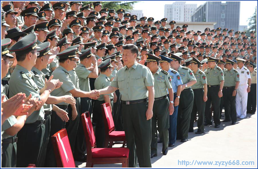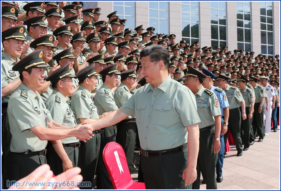习近平强调,实现强军目标,建设世界一流军队,我军院校建设必须有一个大的加强。要紧紧围绕实现党在新形势下的强军目标,贯彻新形势下军事战略方针,解放思想、实事求是、与时俱进,积极推进院校改革创新,不断提高办学育人水平,为实现中国梦强军梦提供有力的人才和智力支持。